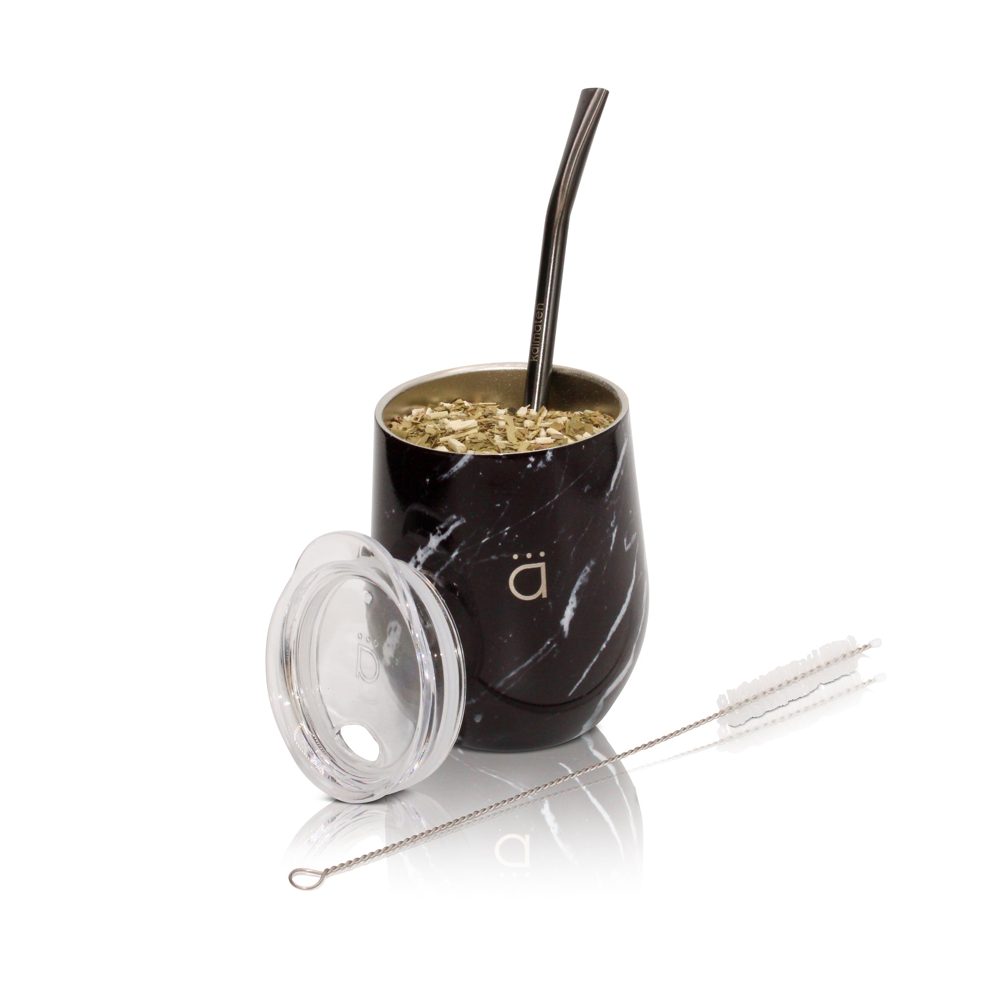 Black Marble Classic Stainless Steel Yerba Mate Gourd 8oz