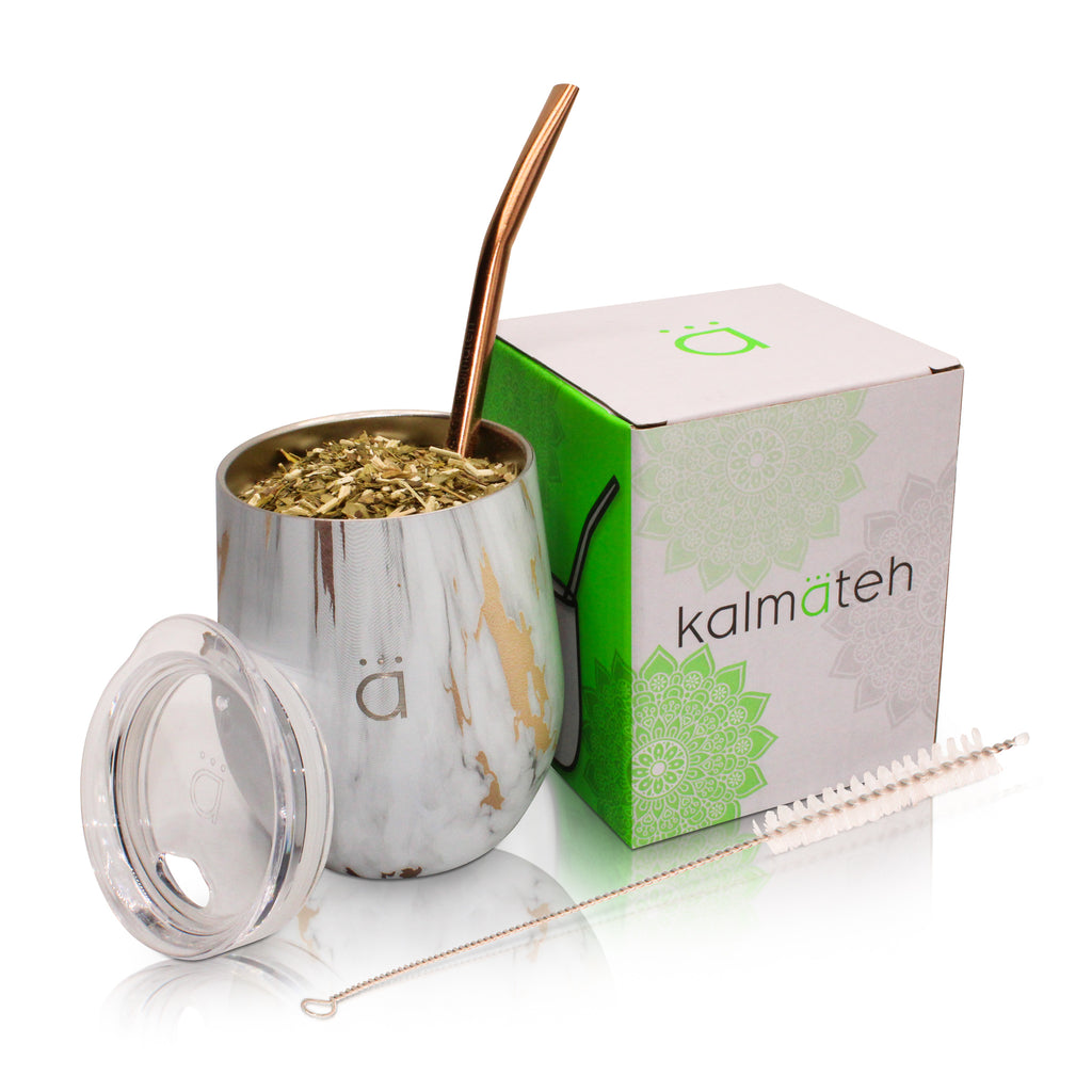 - 18/8 Stainless Steel: Kalmateh Gourds and Termos are made out of 18/8 food grade stainless steel which provides a robust build. They are also BPA Free, rust resistant, and are easy clean by hand.