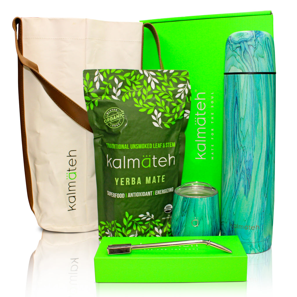 Includes: Turquoise Classic Mate Gourd, Turquoise Termo 1000ml, Organic Yerba Mate, Cream Matera Tote Bag and a Beautifully Handcrafted Alpaca Bombilla!