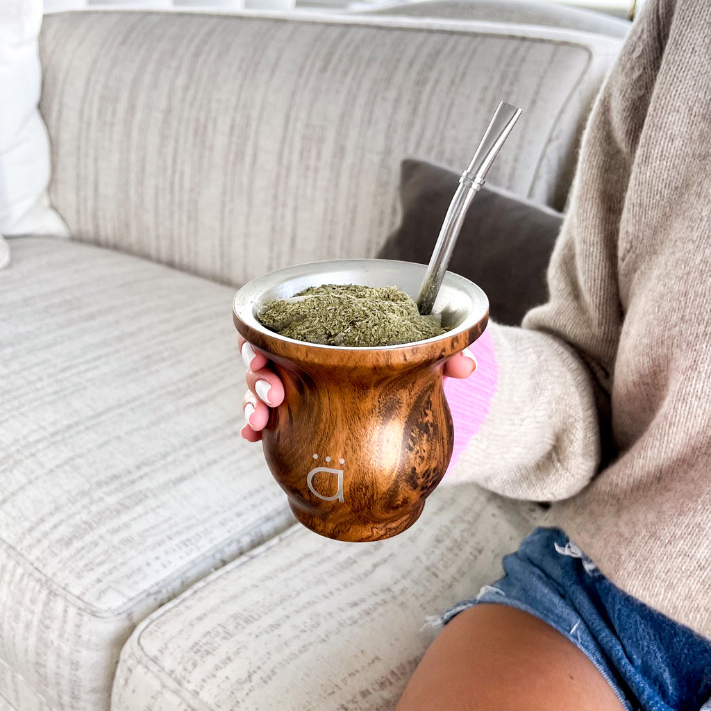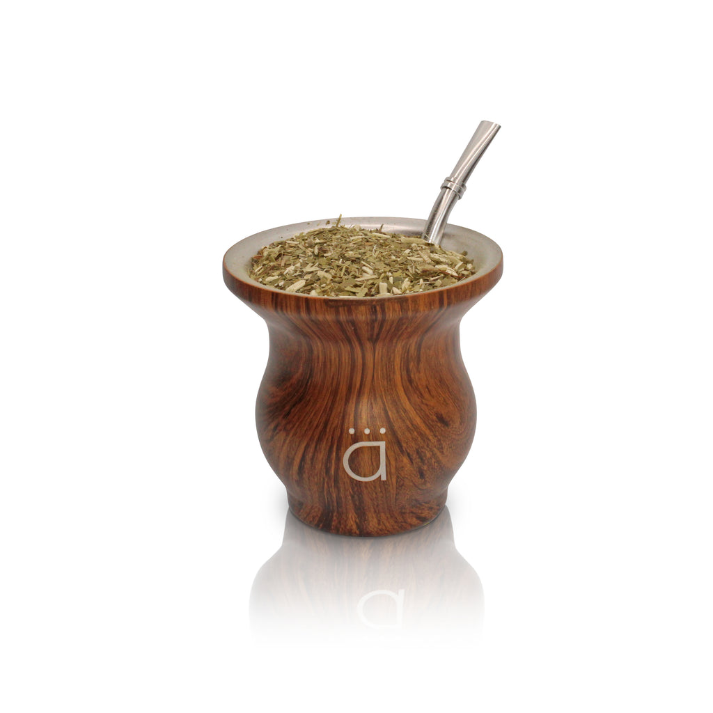Wood Elegant Stainless Steel Yerba Mate Gourd 9oz