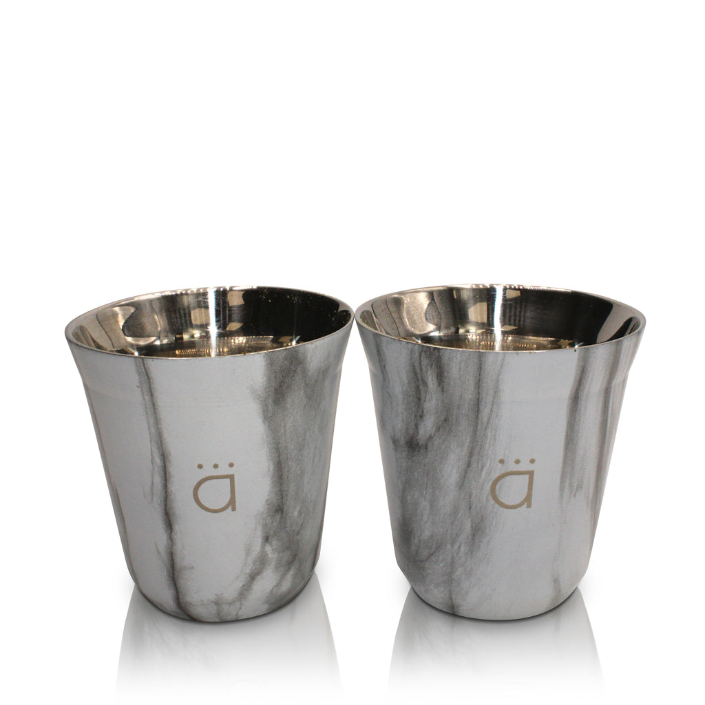 ☕ INCLUDES: Set of 2 stainless steel (5oz) coffee cups with a beautiful gift box! This set comes in 6 vibrant elegant colors: Matte Black, Wood, Flower Power, Turquoise, Galactic Black and Marble.