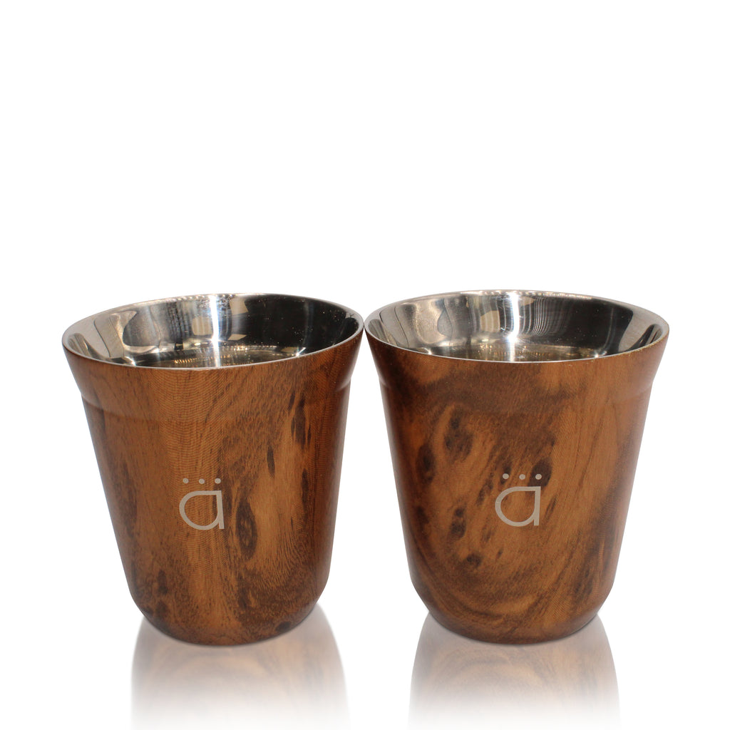 ☕ INCLUDES: Set of 2 stainless steel (5oz) coffee cups with a beautiful gift box! This set comes in 6 vibrant elegant colors: Matte Black, Wood, Flower Power, Turquoise, Galactic Black and Marble.