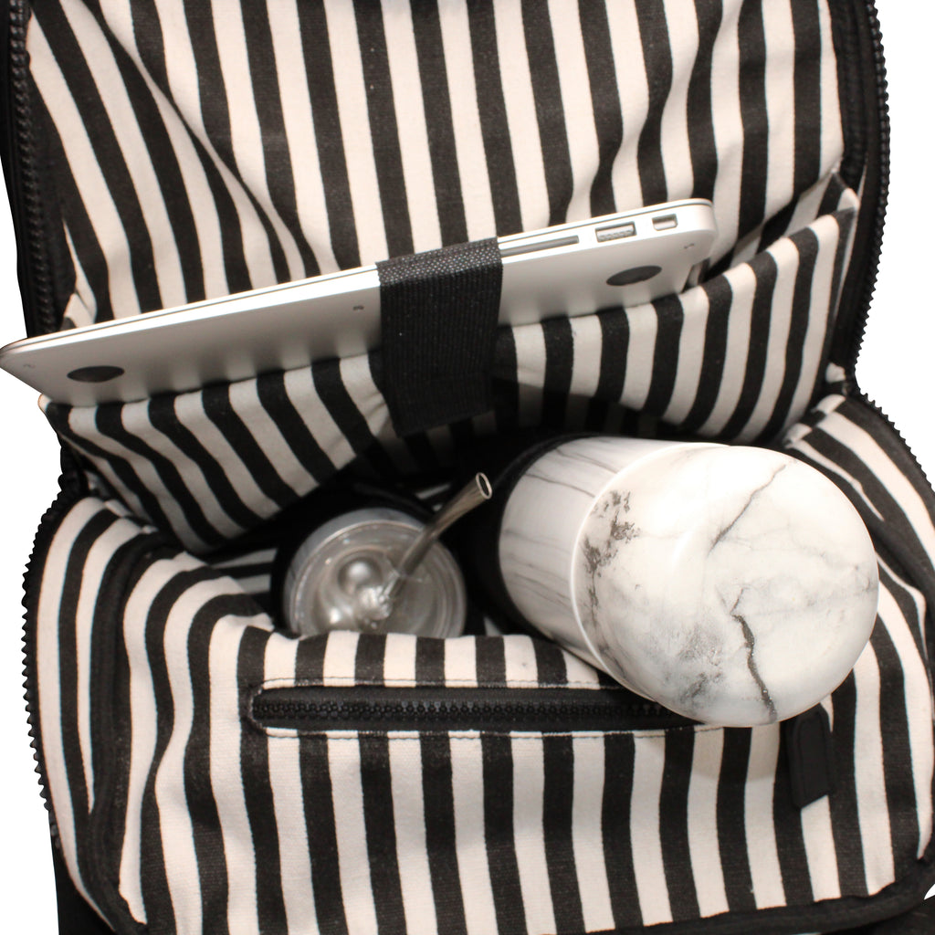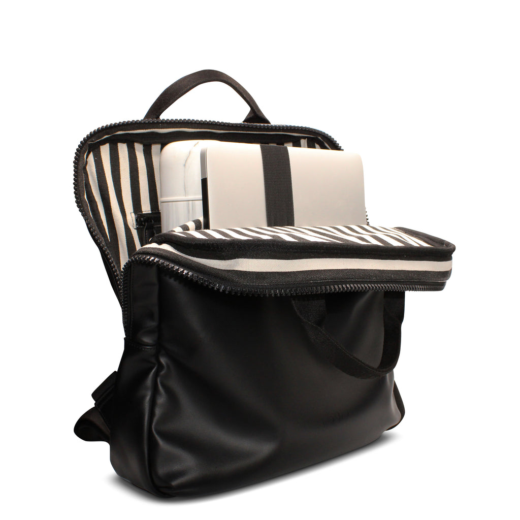 - ELEGANT STYLE: This modern matera backpack is available in 2 gorgeous colors, including Black and White. With an ultra-elegant one of a kind design, this eco-friendly bag is sure to add a touch of class and comfort to your mate set!