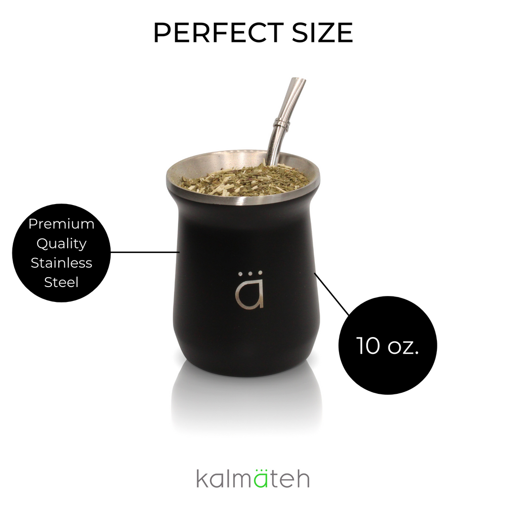 - Fancy Design: These innovative Kalmateh Gourds with premium quality stainless steel hold up to 10 oz of mate and are first of its kind! They are thoughtfully designed to connect the mate lovers with the fancy world, as you can drink it as tradition says with the Yerba, Bombilla and Thermos!
