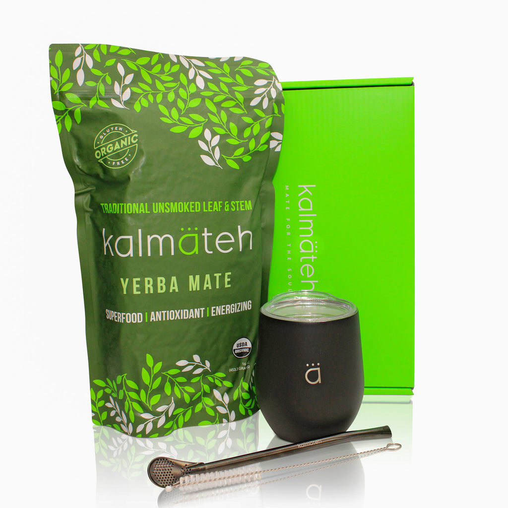 - Starter Set: This yerba mate set includes a premium quality Matte Black Classic Stainless Steel Yerba Mate Gourd with a Stainless Steel Bombilla, a practical Bombilla Cleaner, and an all-natural 1 lb. Organic Unsmoked Yerba Mate. All you need for an incredible mate experience!