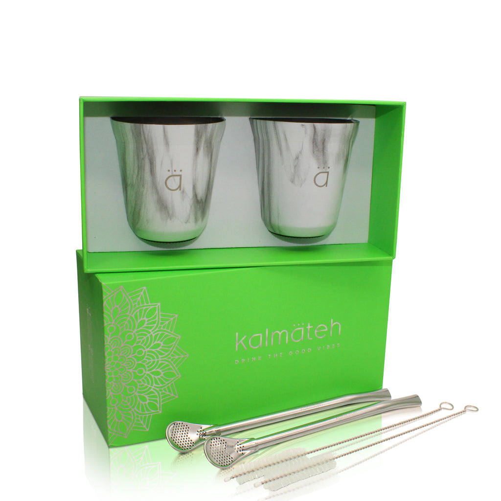 • Includes: 2 Petite Yerba Mate Gourds, 2 Bombilla Straws, 2 Bombilla Cleaners and a beautiful Gift Box!